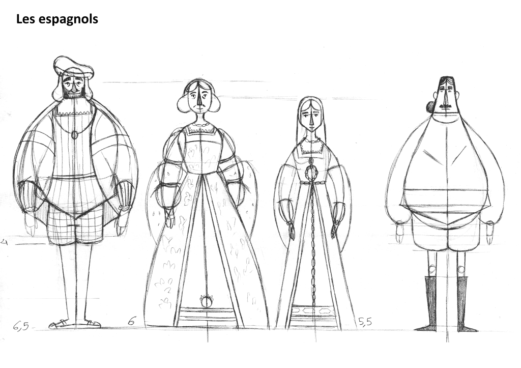 Dans le cadre du projet « La Llorona », un line up qui présente les personnages principaux, soit: La Llorona, L’Espagnol et leur fils.